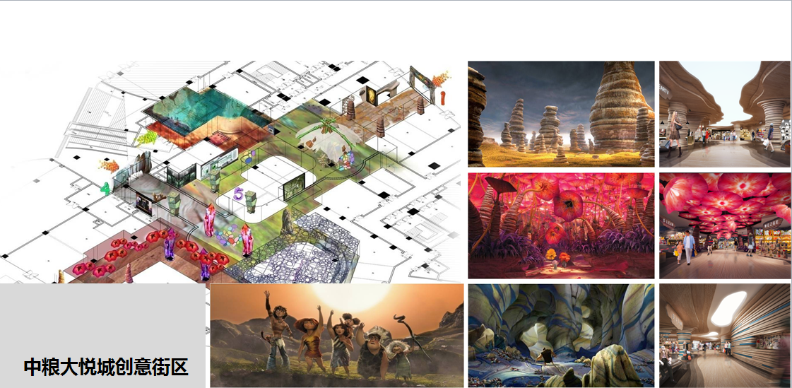 在大型购物中心,设计师将根据业态分布及人流动线,以及地域文化等特色作为设计主题融入装饰风格中,营造不同的商业时尚主题,给顾客提供与众不同的感知和体验,在提供功能需求的同时,极大的满足个性需求,提升商业价值。