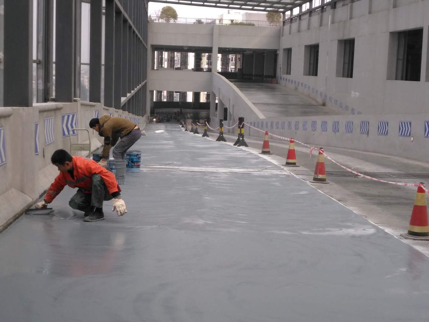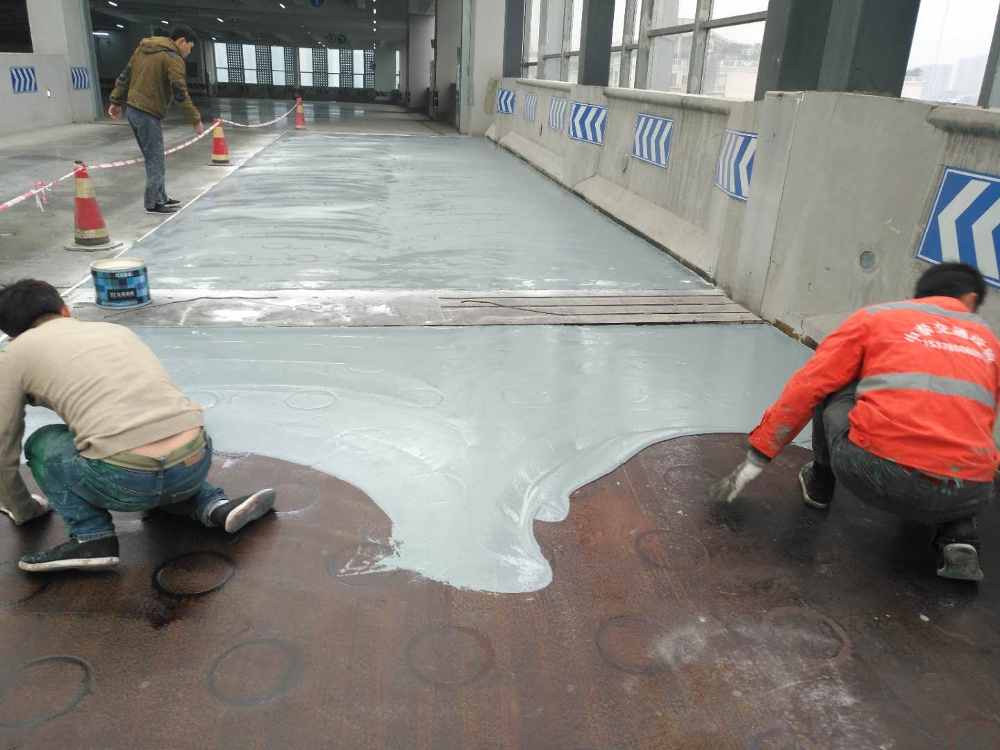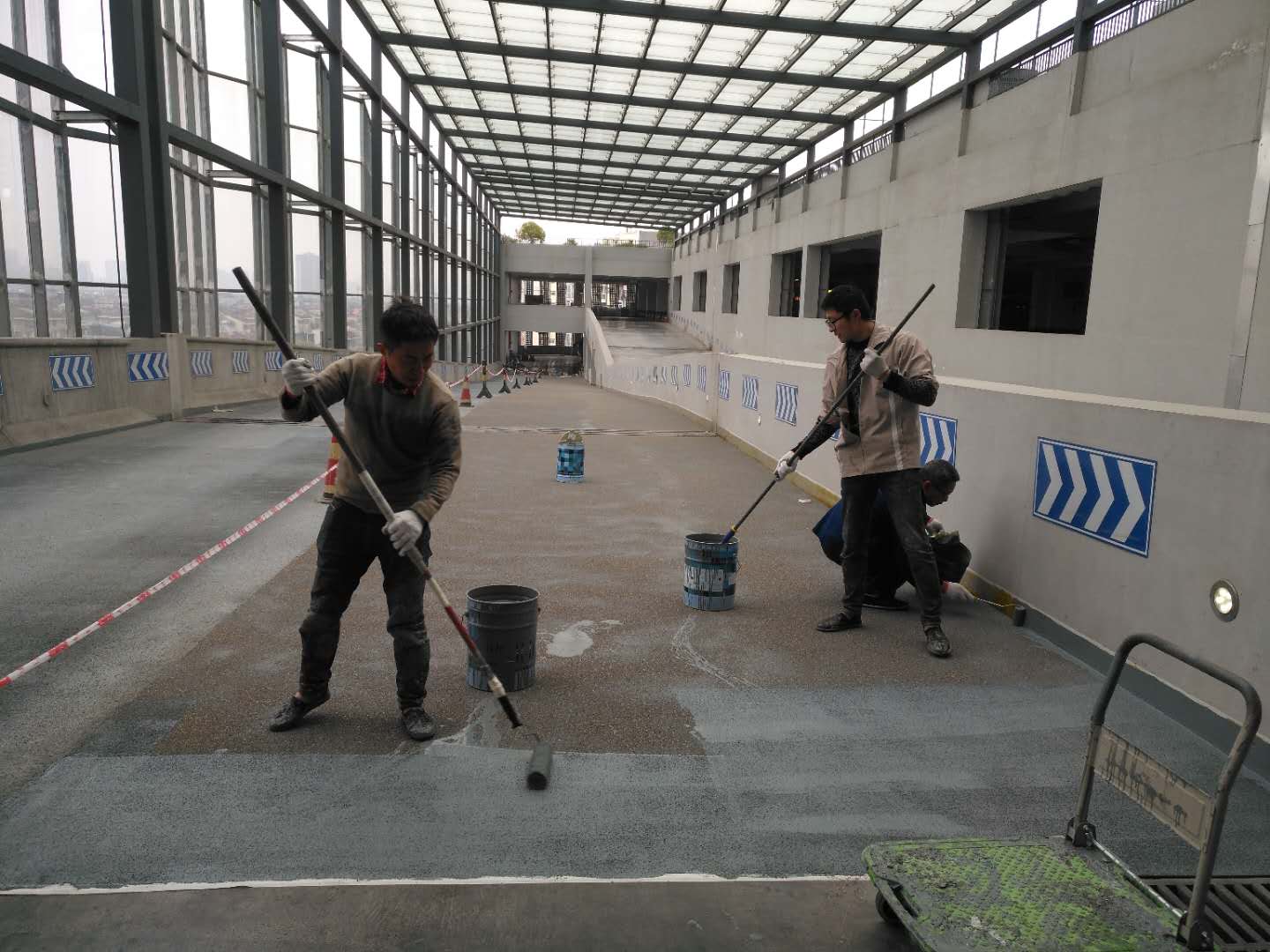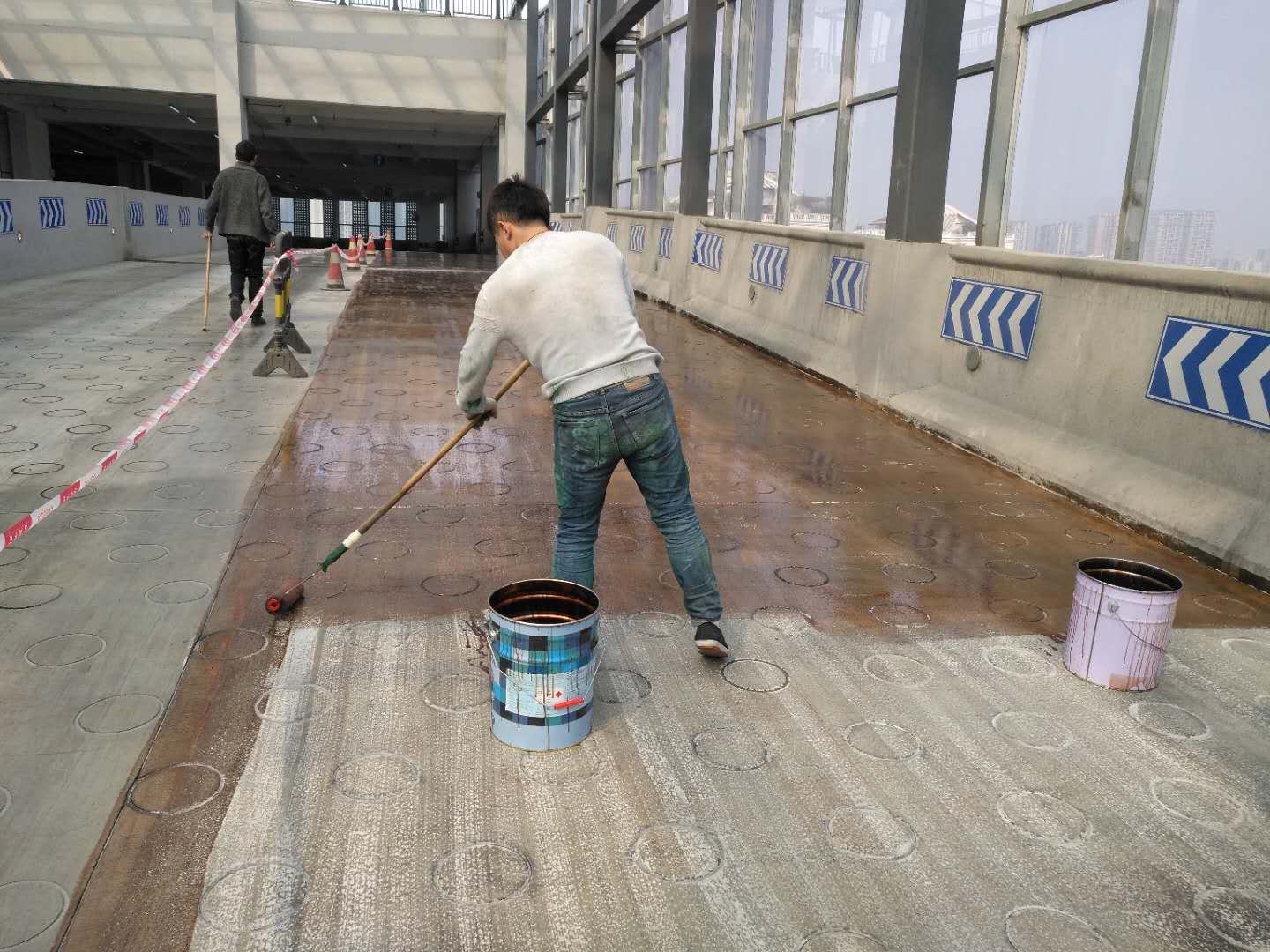 金沙公交综合体坡道路面聚脲防滑耐磨施工